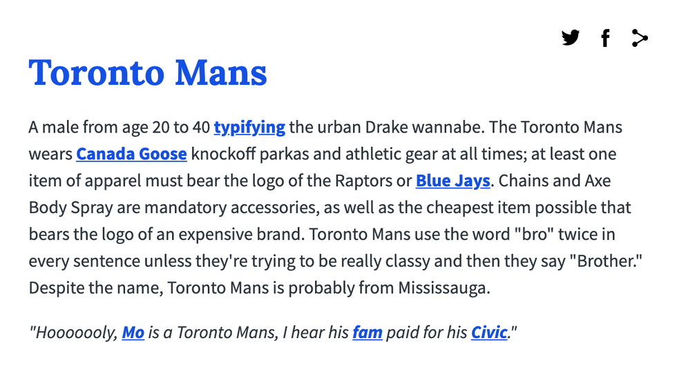 While a Toronto Mans is a stereotype of your average guy in the 6ix, this definition really went in.