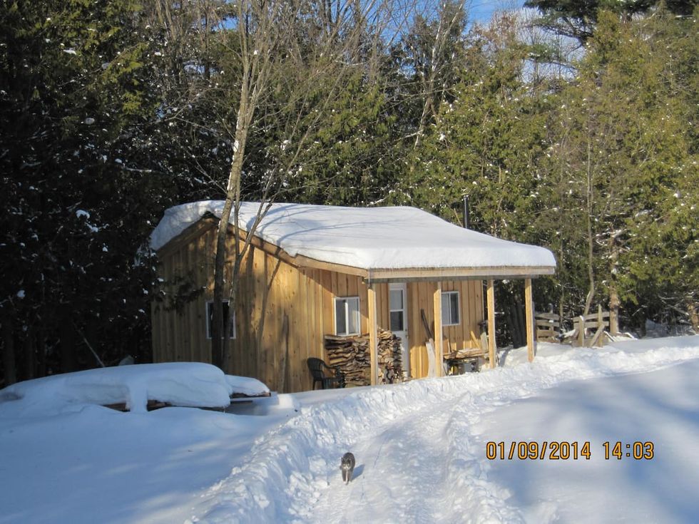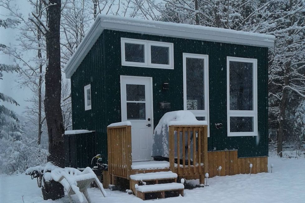 Why You Need To Go: Relax in this four-person secluded bunkie surrounded by snowy trees. The large windows let you look out into the winter wonderland beyond.