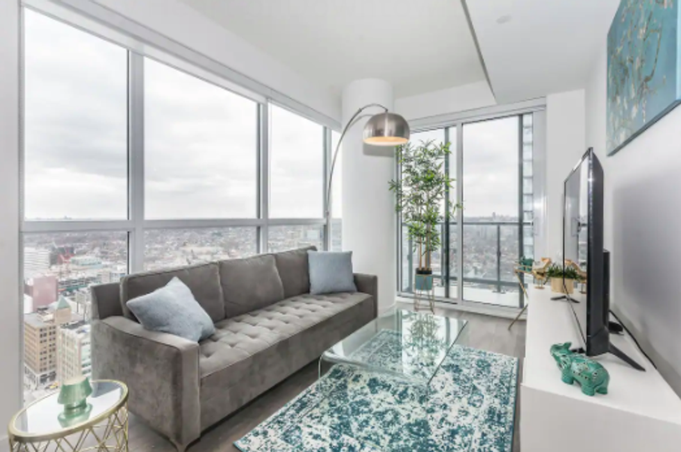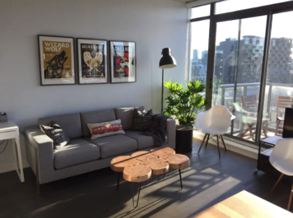Why You Need To Go: The floor to ceiling windows in this apartment will make you fall in love with the Toronto skyline. The beautiful decor and houseplant collection is also a cozy touch.