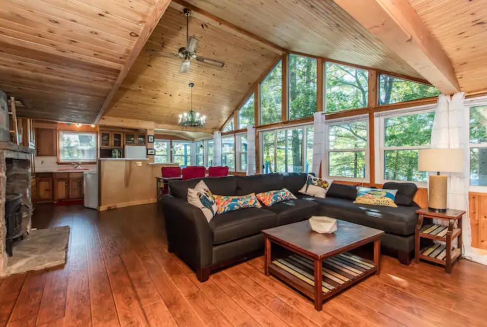 Inside, you’ll find floor-to-ceiling wood, giving you that rustic cottage vibe you expect to get when you visit Muskoka.