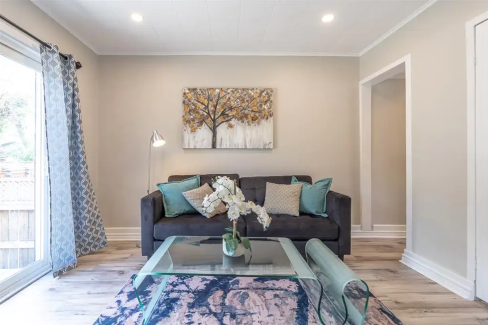 Located in Hamilton’s Homeside neighbourhood, this charming blue house comes with two bedrooms, one-and-a-half bathrooms, and a surprisingly spacious back yard.