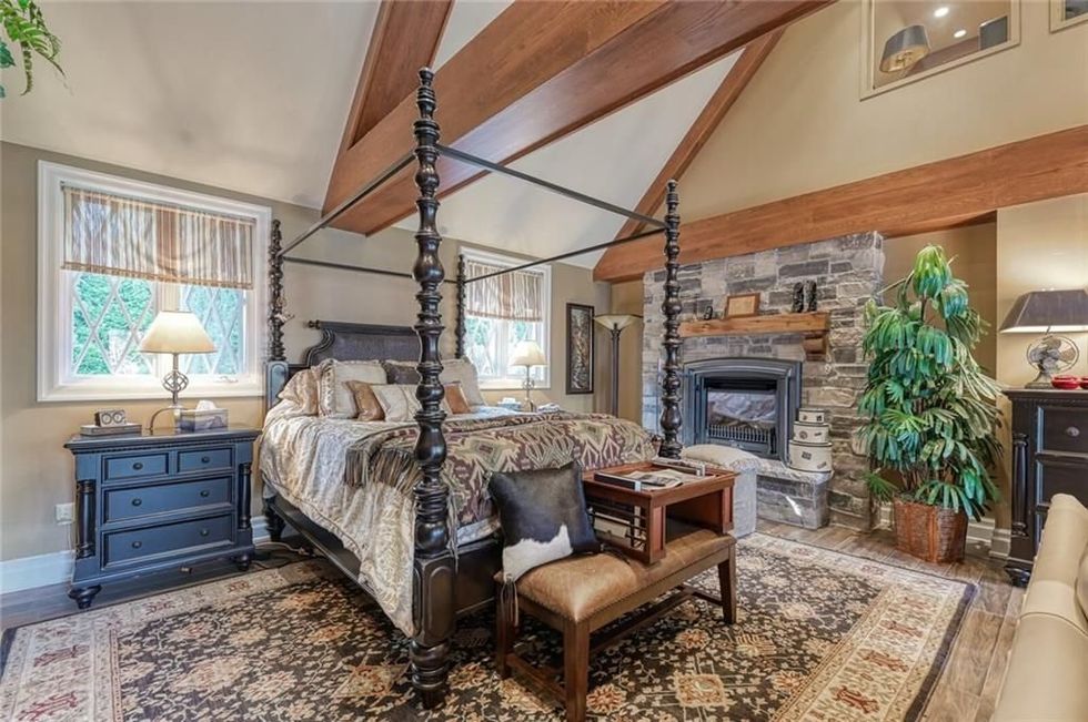 Inside, you’ll find four bedrooms, four bathrooms, and four cozy fireplaces, including one that’s located right beside the spa-like bathtub.