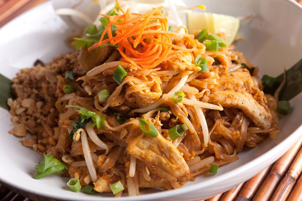 Rice noodles stir-fried with egg, tofu and piquant tamarind sauce, topped with green onions, lemon and peanuts — that's pure bliss.