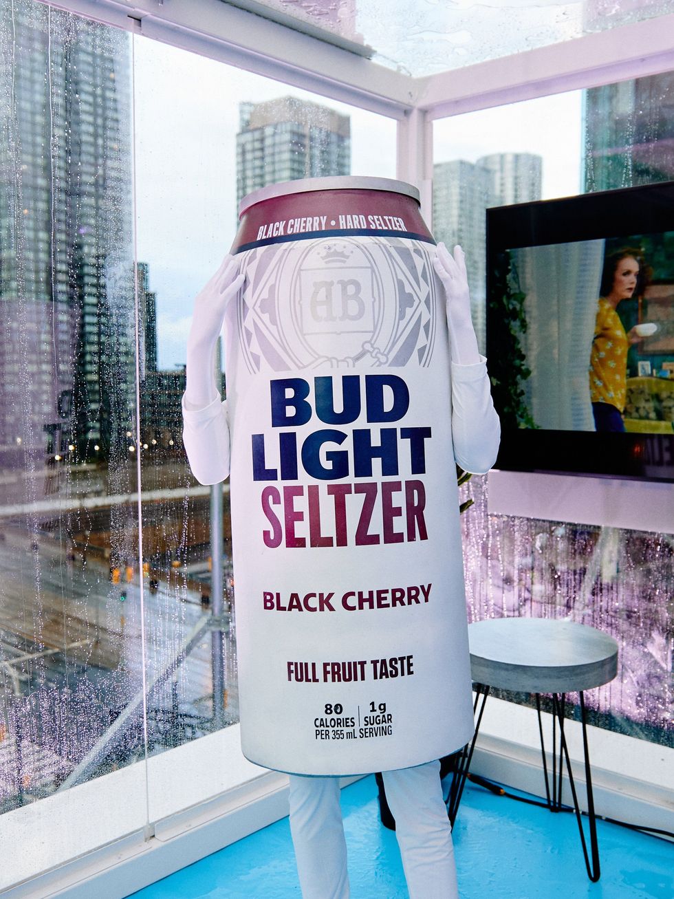 If you see a human Bud Light can chilling in a glass box on your walk this week don't worry, it's just Seltzy.