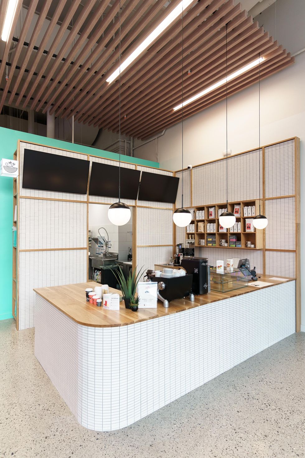There is a separate area for customers to relax in as well as bar tops to work on.