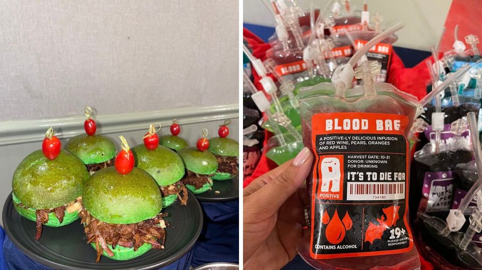 You can choose from Pixie Potion, Purple People Eater (both available in non-alcoholic versions), the Positive A Blood Bag (which is sangria) and Toxic Waste.