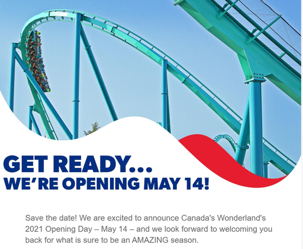 On Thursday, Canada's Wonderland made the exciting announcement that it will open its doors for the 2021 season on May 14.