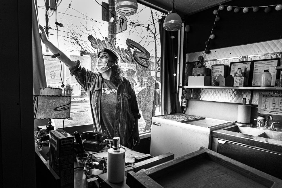 To capture the impact on the industry, Jody Shapiro, co-owner of Toronto’s Antler Kitchen and Bar introduced a photo series called "Lockdown 2.0," which documented over a dozen restaurants in Toronto, like LEV bakery which was capture on day 66 of lockdown.