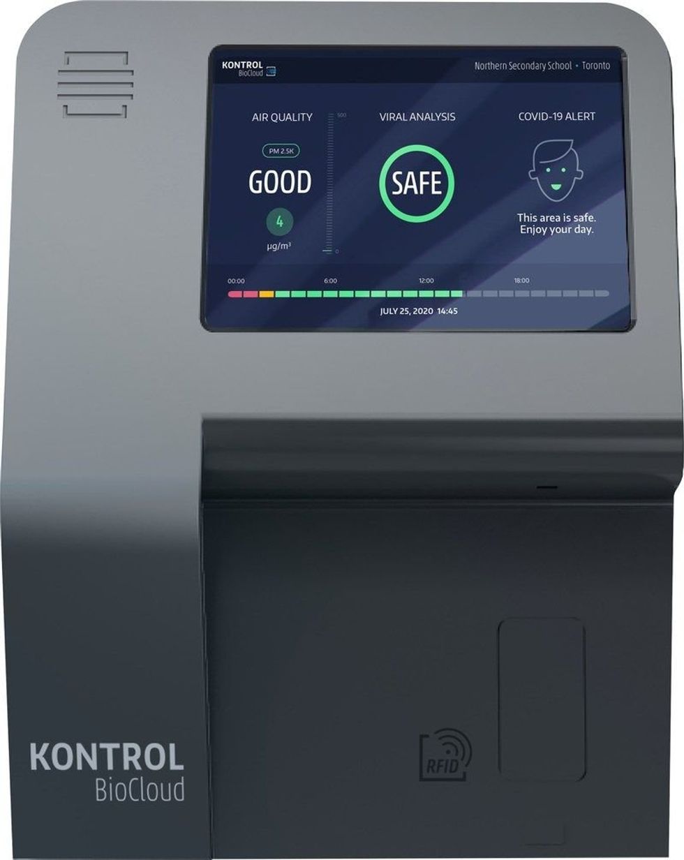 The company is Kontrol Energy Corporation and their new machine is called BioCloud. They say it's an "unobtrusive wall-mounted technology which detects the presence of COVID-19 in the air."