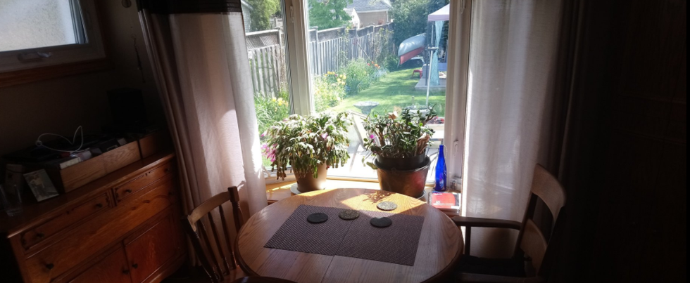 Description: A well-lit basement apartment that offers plenty of greenery and plant life in its backyard