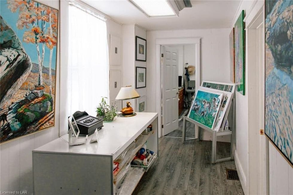 This house doubles as an art gallery and studio, steps from downtown Minden, Ontario.