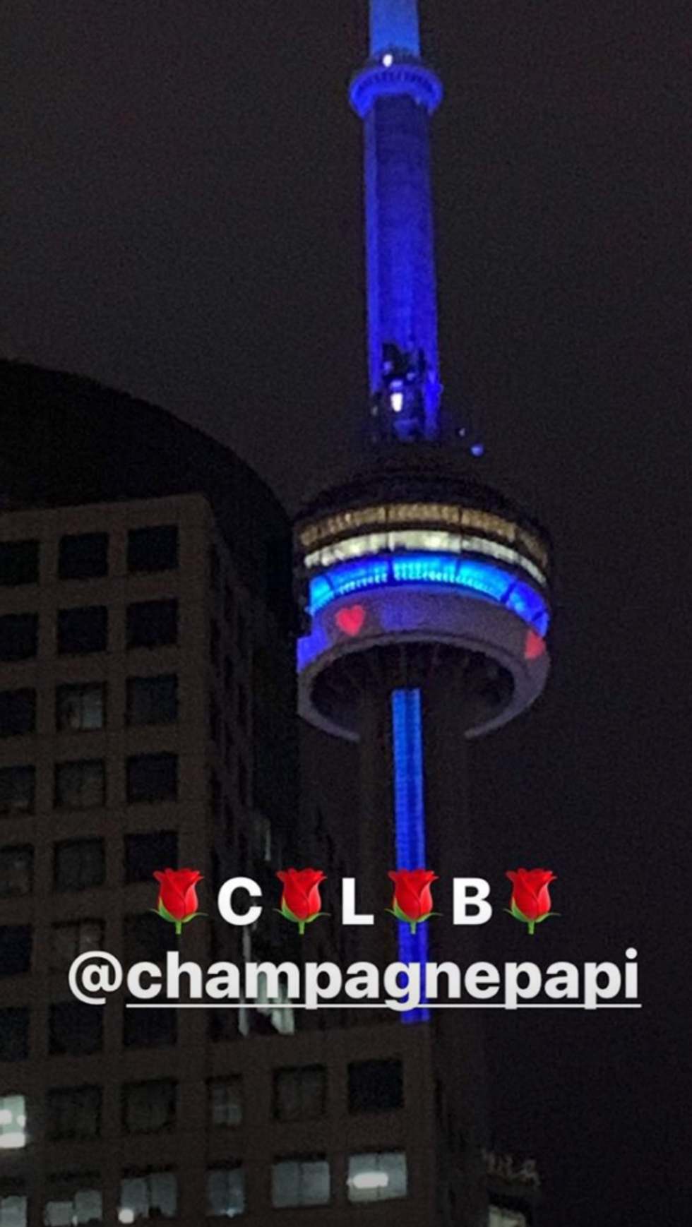 Toronto's famous landmark lit up in hearts last night and the 6ix God approved.