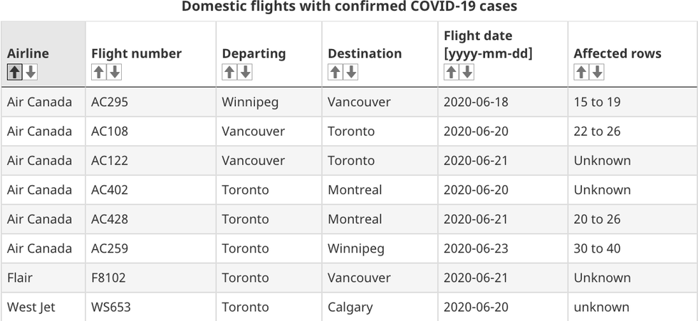 Overall, since June 17, the Canadian government has reported 10 flights that have passed through Toronto that may have been exposed to COVID-19.