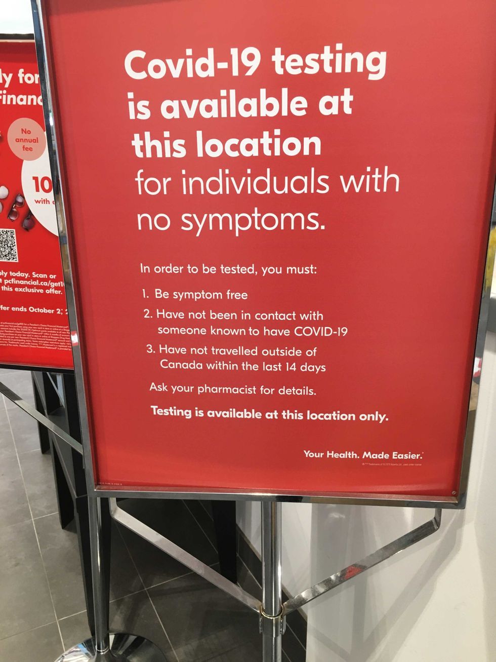 At the 1027 Yonge Street location, multiple signs could be seen hanging throughout the store, explaining the qualifications for being tested.