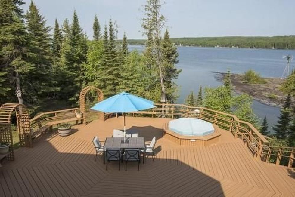 Located on the beautiful shores of Lake Superior, the Palette Island listing features a beautiful two-bedroom home with a massive wraparound deck that offers views for days.