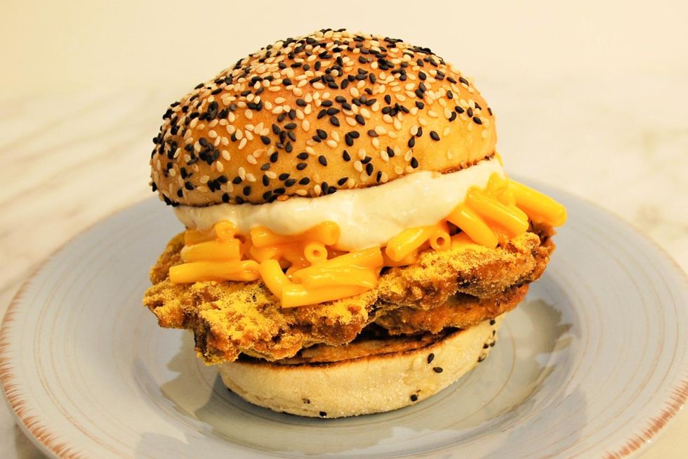 Why You Need To Try It: If you're a Kraft Dinner lover then look no further than this burger. Complete with KD cheddar-crusted buttermilk fried crispy chicken, roasted garlic aioli, and more, it's the most unique way to enjoy these cheesy noodles.
