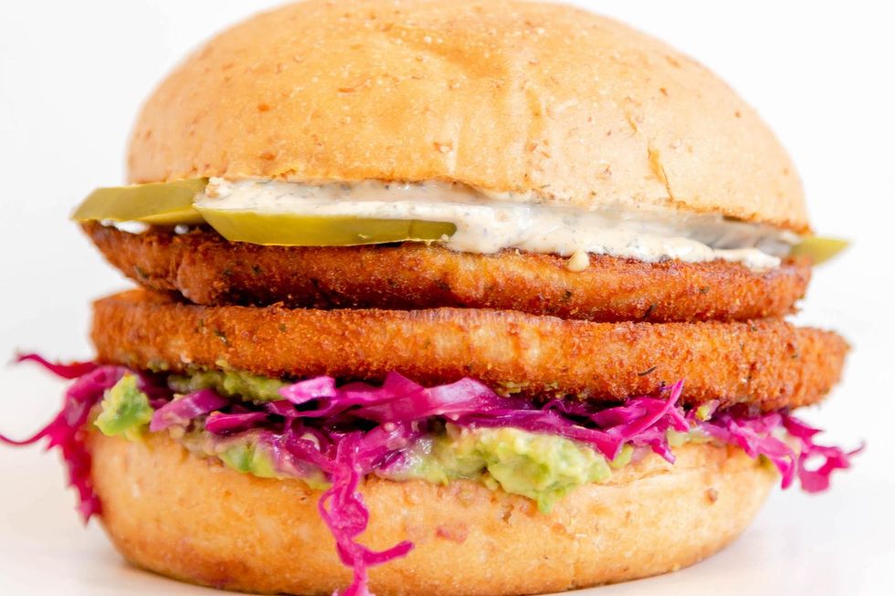 Why You Need To Try It: Seafood fans can enjoy a crispy filet topped with tartar sauce, pickles, slaw, and guacamole.