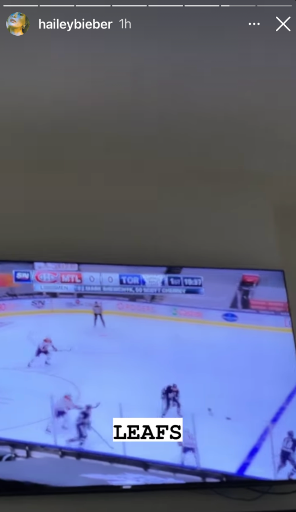 Hailey tuned into the game as soon as it started and showed off her Toronto love in her Instagram story.
