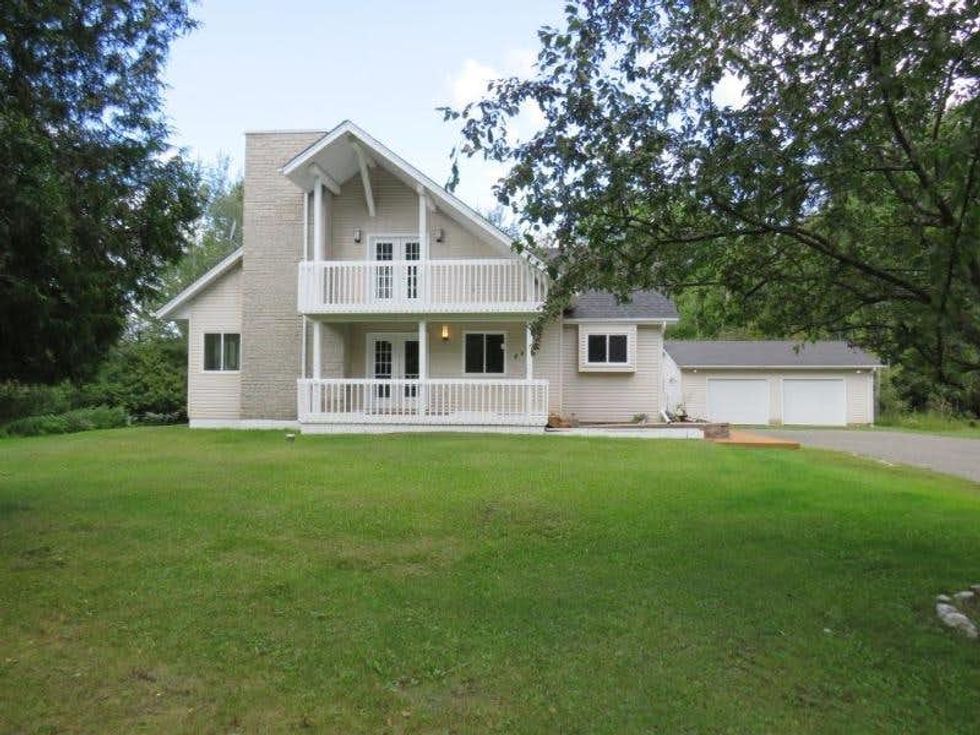 Description: This little gem might be the most expensive on the list, but it will have you feeling like you're in a permanent resident in cottage country. The 2428-square-foot house features four bedrooms and is decked out with solar panels that generate a monthly income. And you can't beat the views available from the home's 70-foot wrap-around deck either.