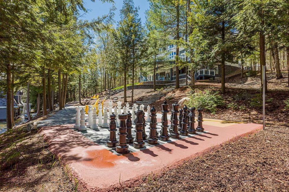 Checkmate! This luxury Muskoka cottage for sale has everything you could possibly dream of and a few things you never knew you needed. From the gorgeously whimsical boathouse to the giant outdoor chessboard, the possibilities are nearly endless here.