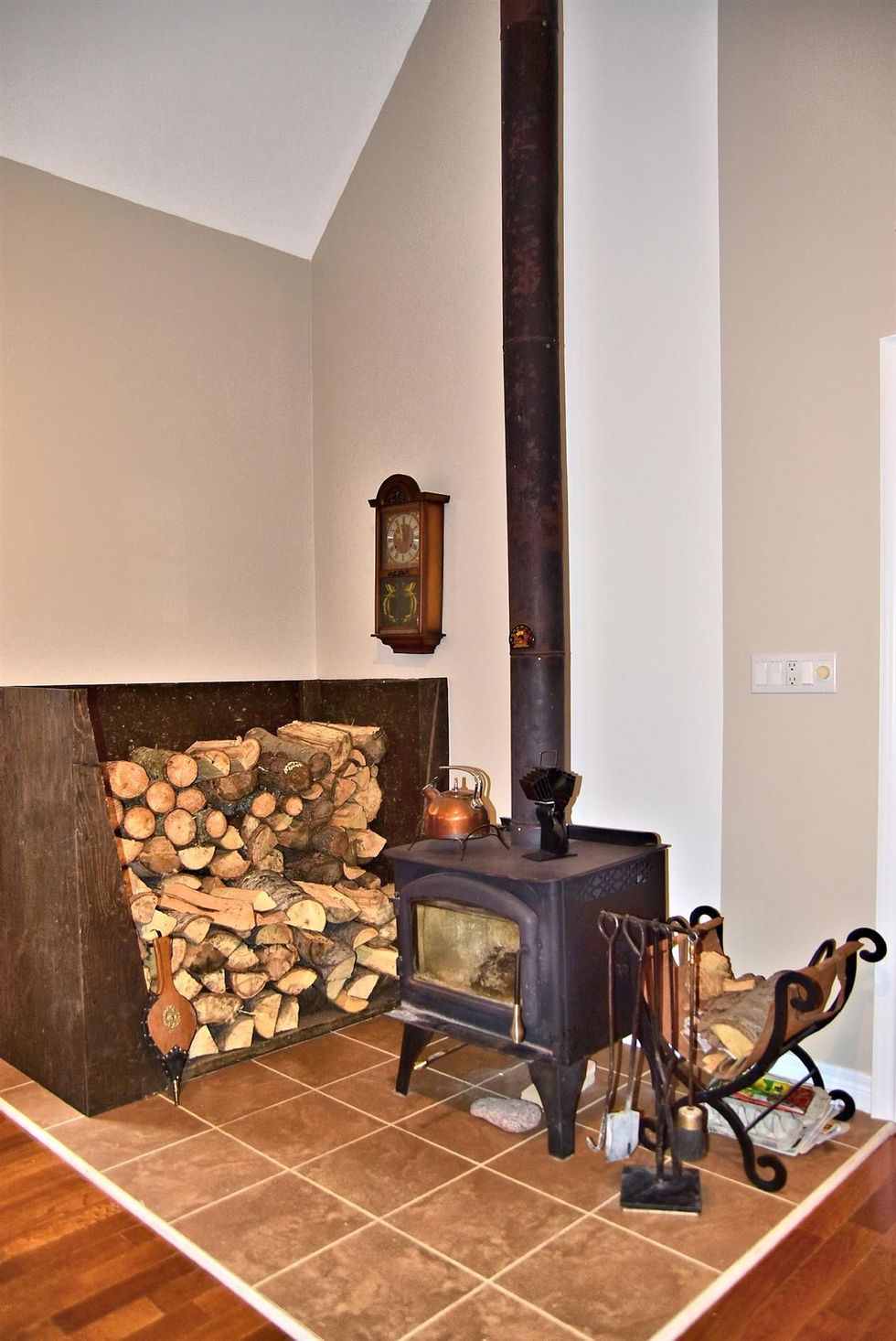 The two-bedroom home comes with an adorable woodstove that gives the spot even more rustic charm.
