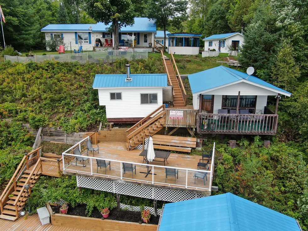 The second has a bedroom, kitchenette and a porch overlooking the lake. However, you will have to walk to another home to do your business, as there is no washroom in this cabin.