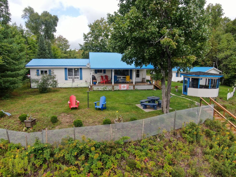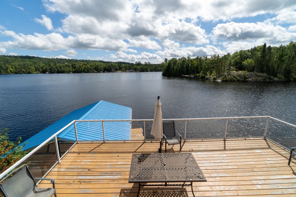 Located in McKerrow, Ontario, this gorgeous spot sits right on Agnew Lake, offering amazing waterfront views.
