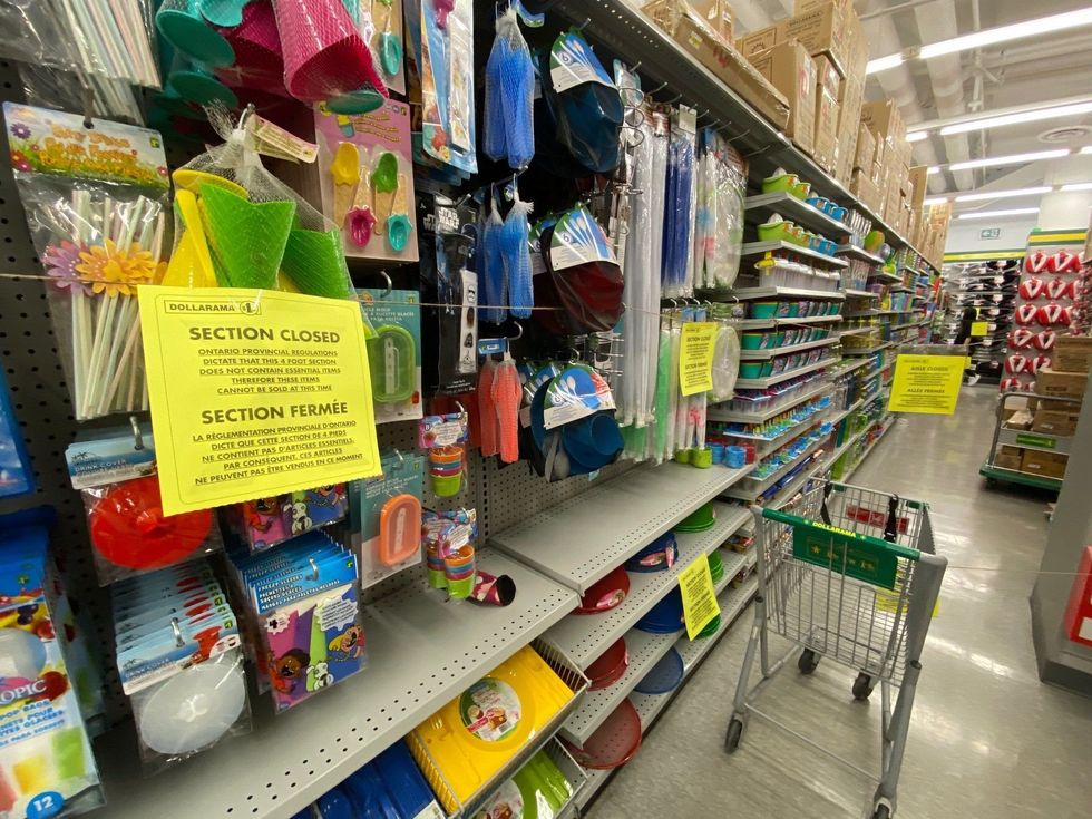 While Dollarama locations across the province remain open, they are only allowed to sell essential goods such as groceries, household cleaning products and personal care items.