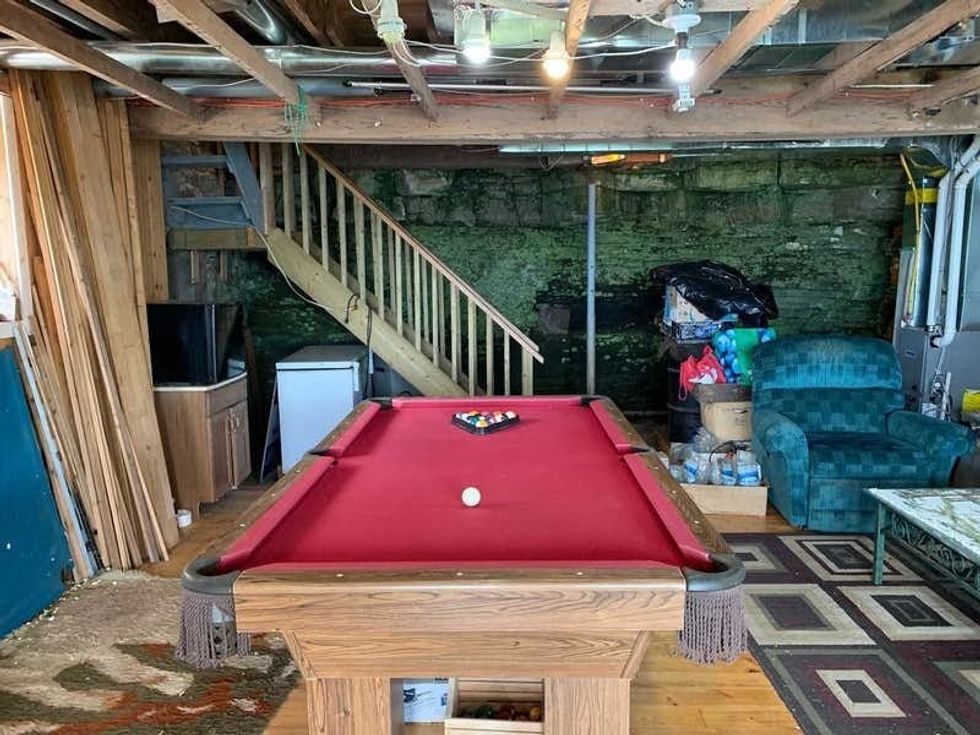 The three-bedroom and one-bathroom spot is accessed by a dreamy iron bridge and spiral staircase.