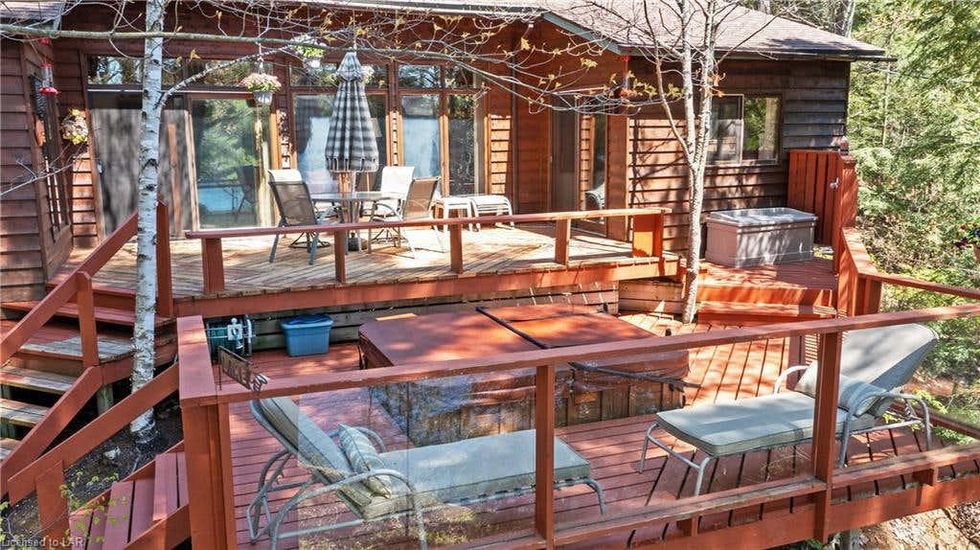 If swimming in lakes isn't your jam, you can also relax in the home's back deck jacuzzi.
