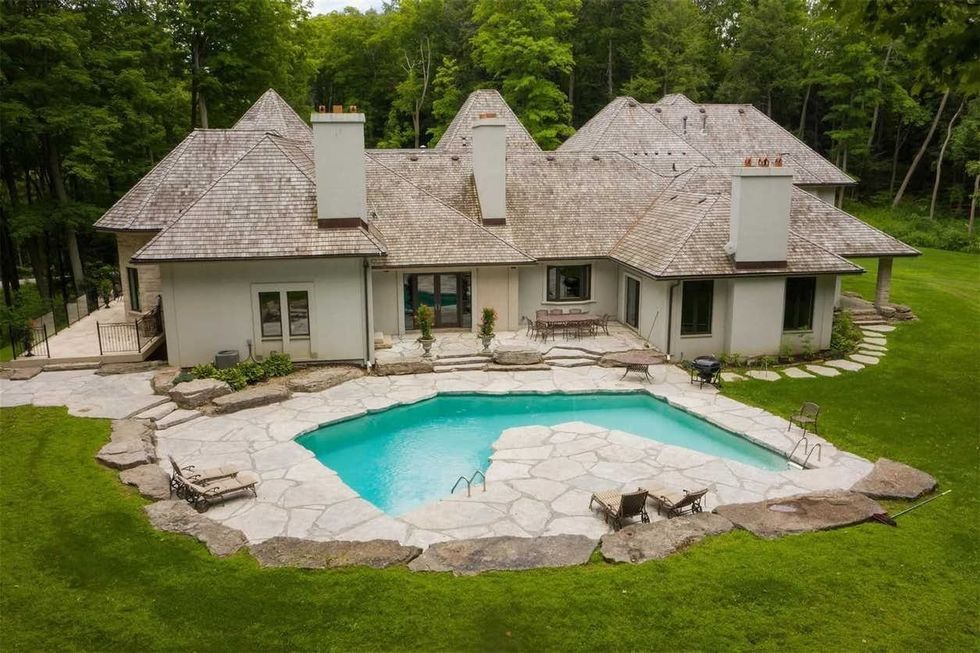If you love sitting waterside, this spot might be the place for you. An Ontario mansion for sale comes with its own pool and massive pond, making it the perfect summer paradise. The interior of this mini-castle is also super over the top.