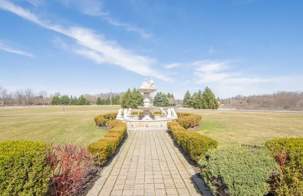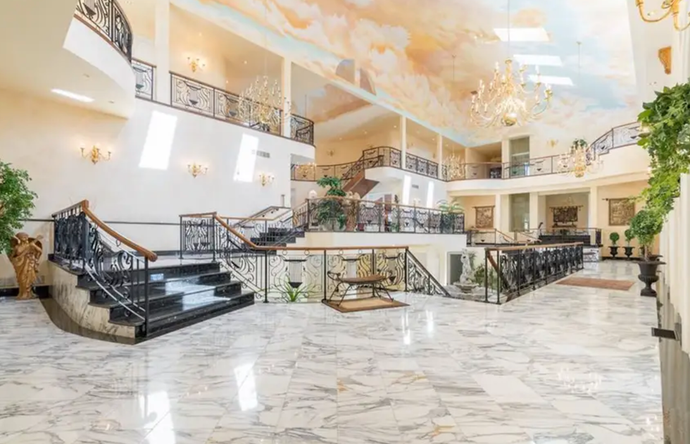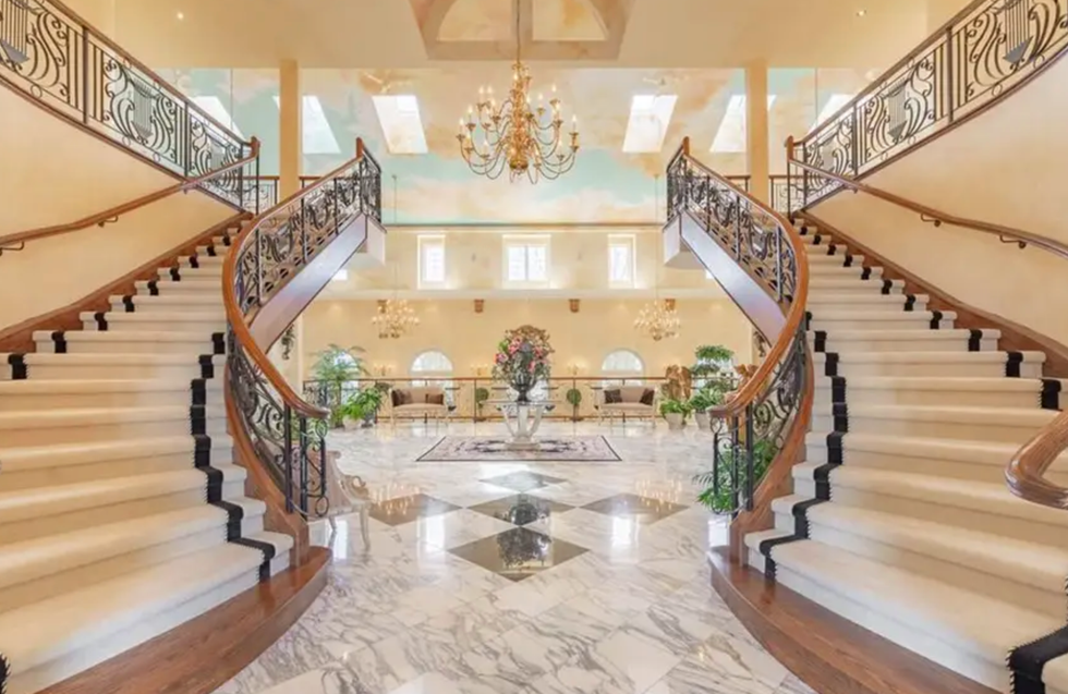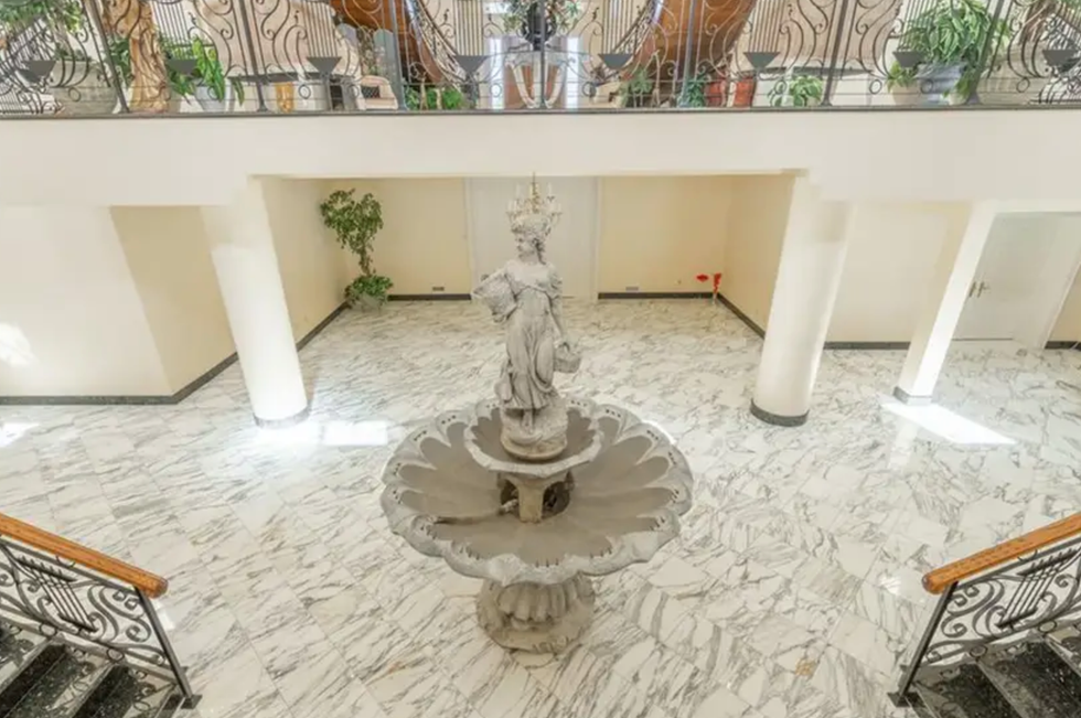 This mansion is so luxurious it even has a fountain-like statue right in the middle of the foyer.