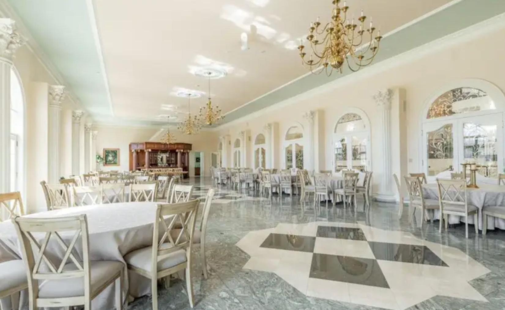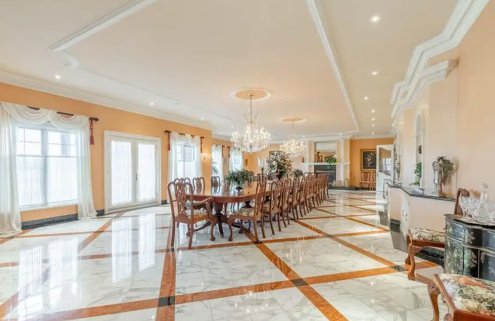 Hosting dinner parties will be a piece of cake with the amount of space this mansion has to offer. Just look at that marble-like flooring.