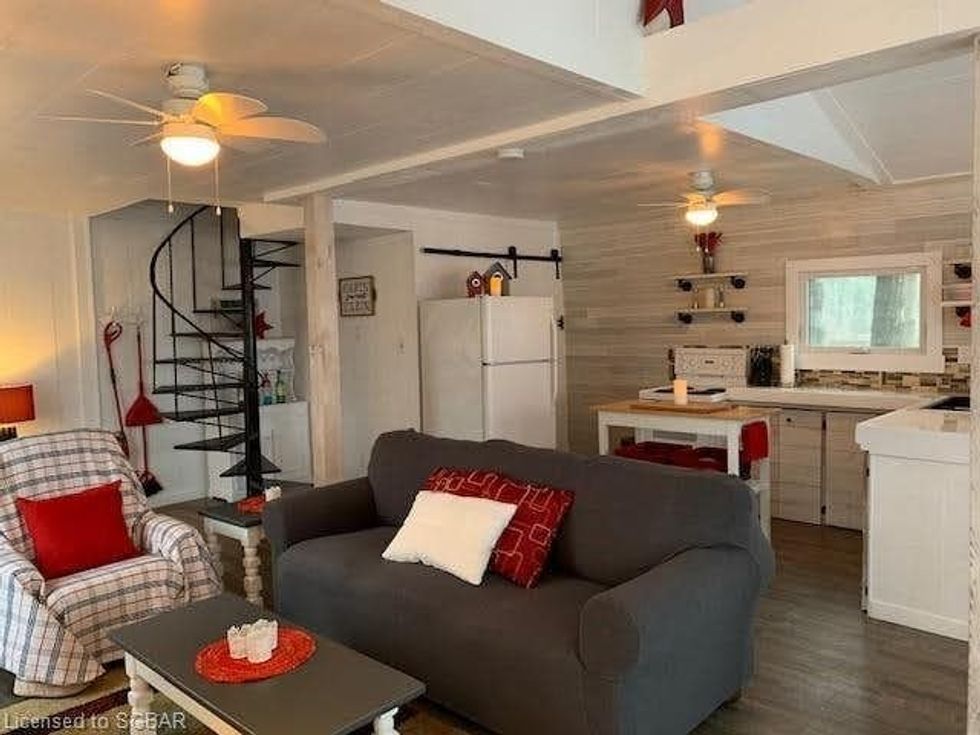 The cottage is being sold as a three-season home, and it's just a five-minute boat ride away from the Starport and Severn Marinas.