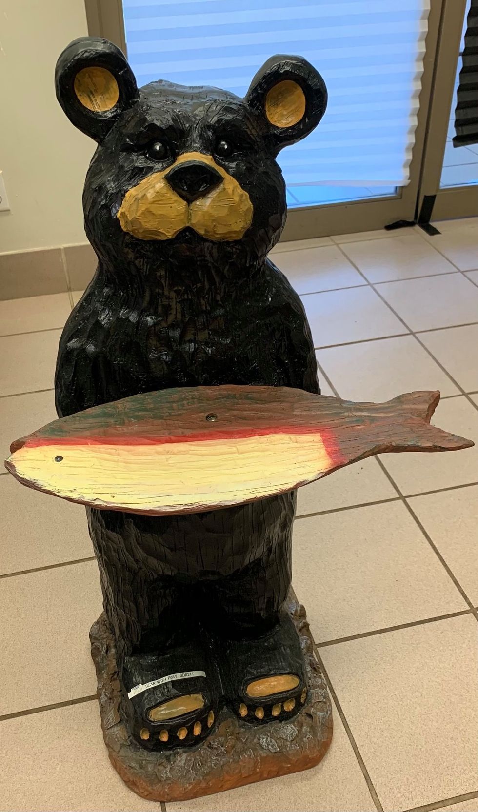 You didn't know you needed your dinner served to you by a cute wooden bear until now. I mean, just look at its eyes.