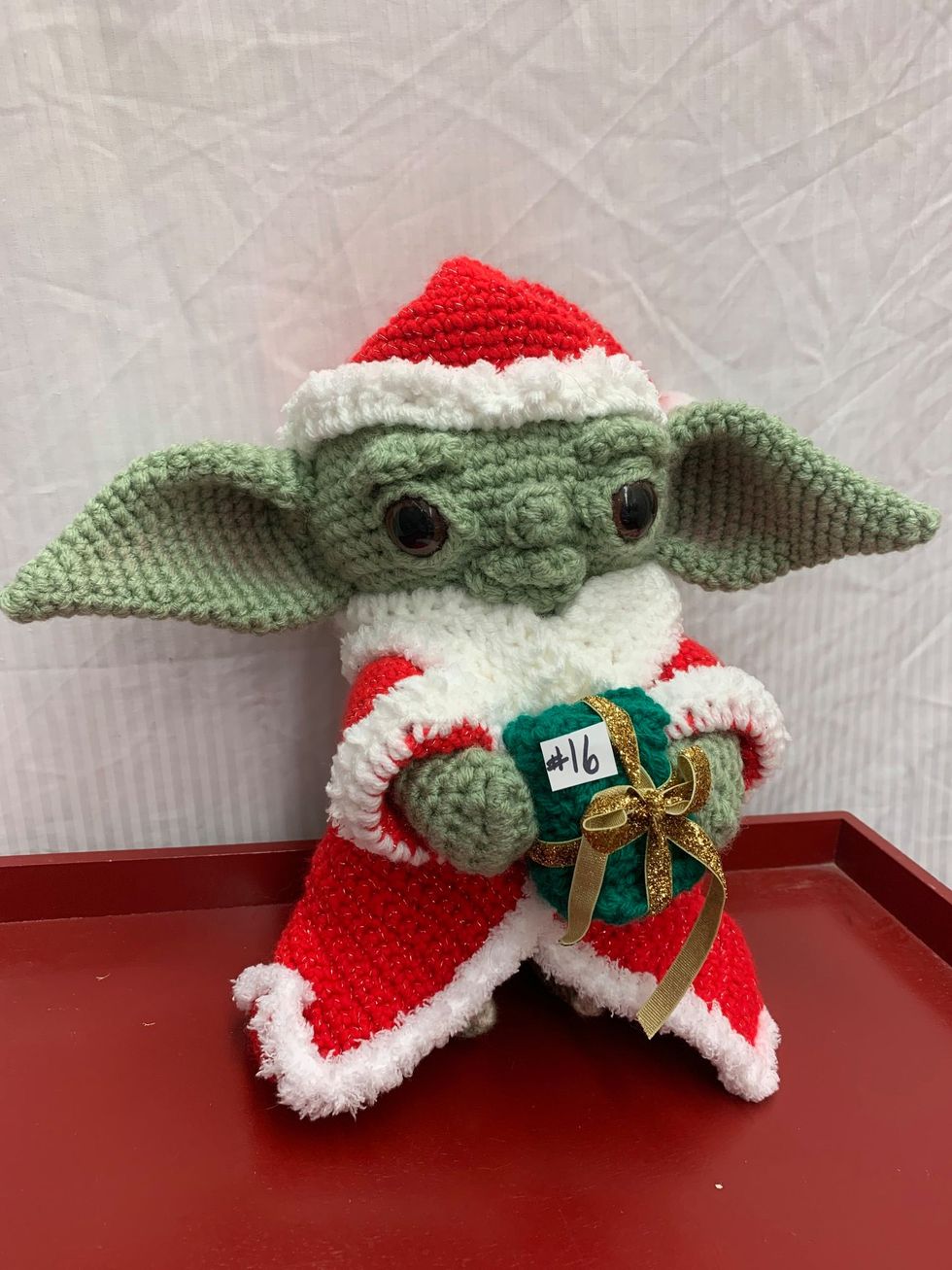 Baby Yoda is all the rage these days, and this hand-made, crocheted doll has a homemade vibe that we are obsessed with. What's inside his incredibly tiny present he's carrying? We can't wait to find out.