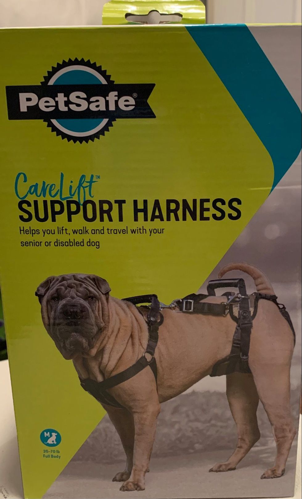 That shar-pei knows you're about to pick it up with a harness and it is not happy about it.
