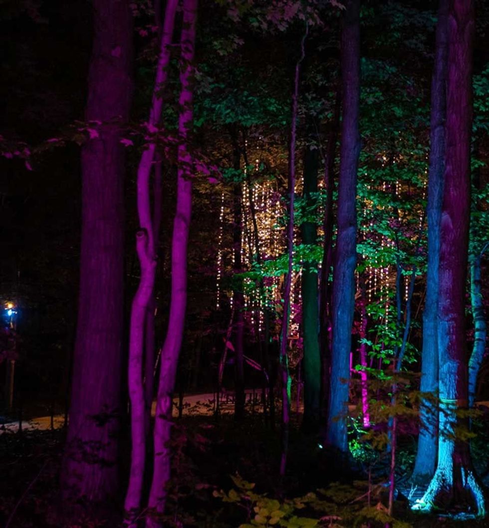 Once you reach the top of the mountain, you can explore a forested area completely transformed with light.