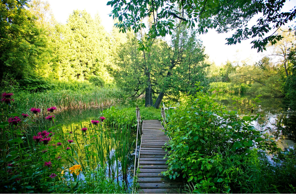 There's a romantic bridge over a trout-filled pond that leads to a little island, and it's the perfect place to relax.