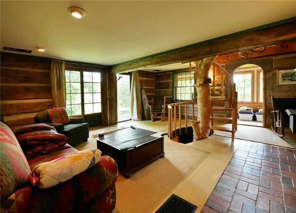 Description: This charming log home is surrounded by forests and meadows, and has a unique tree spiral staricase.