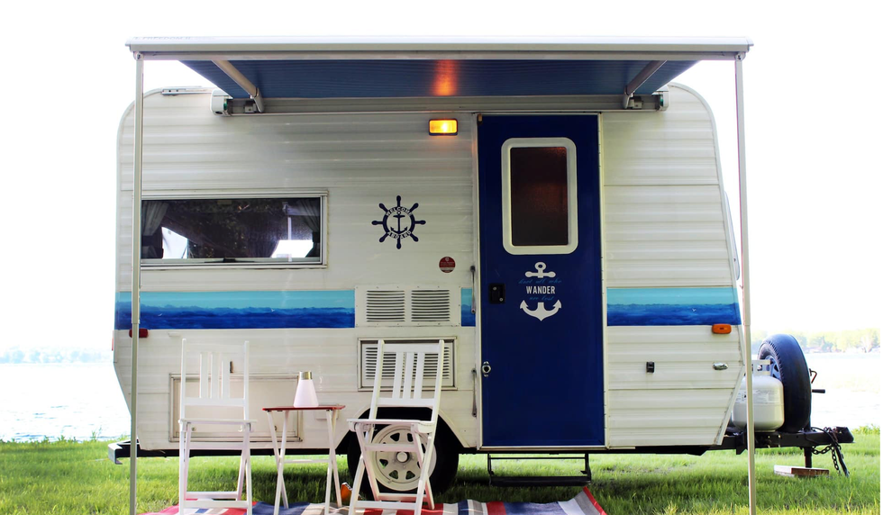 Why You Need To Go: Relax in this nautical themed camper on the shores of Lake Simcoe for the coziest getaway.