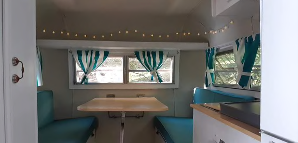 The Happy Glamper looks more like a dream home than a camper. The colourful decor and natural light make it an ideal spot to spend your summer days.