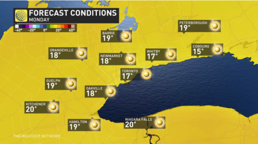 Daytime highs will reach 20 C by Monday, a drastic change of pace compared to this week's snowy start.