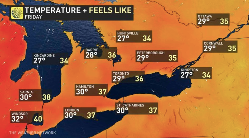 Windsor will be the hottest place in southern Ontario this Friday, with temperatures feeling like 40 C.