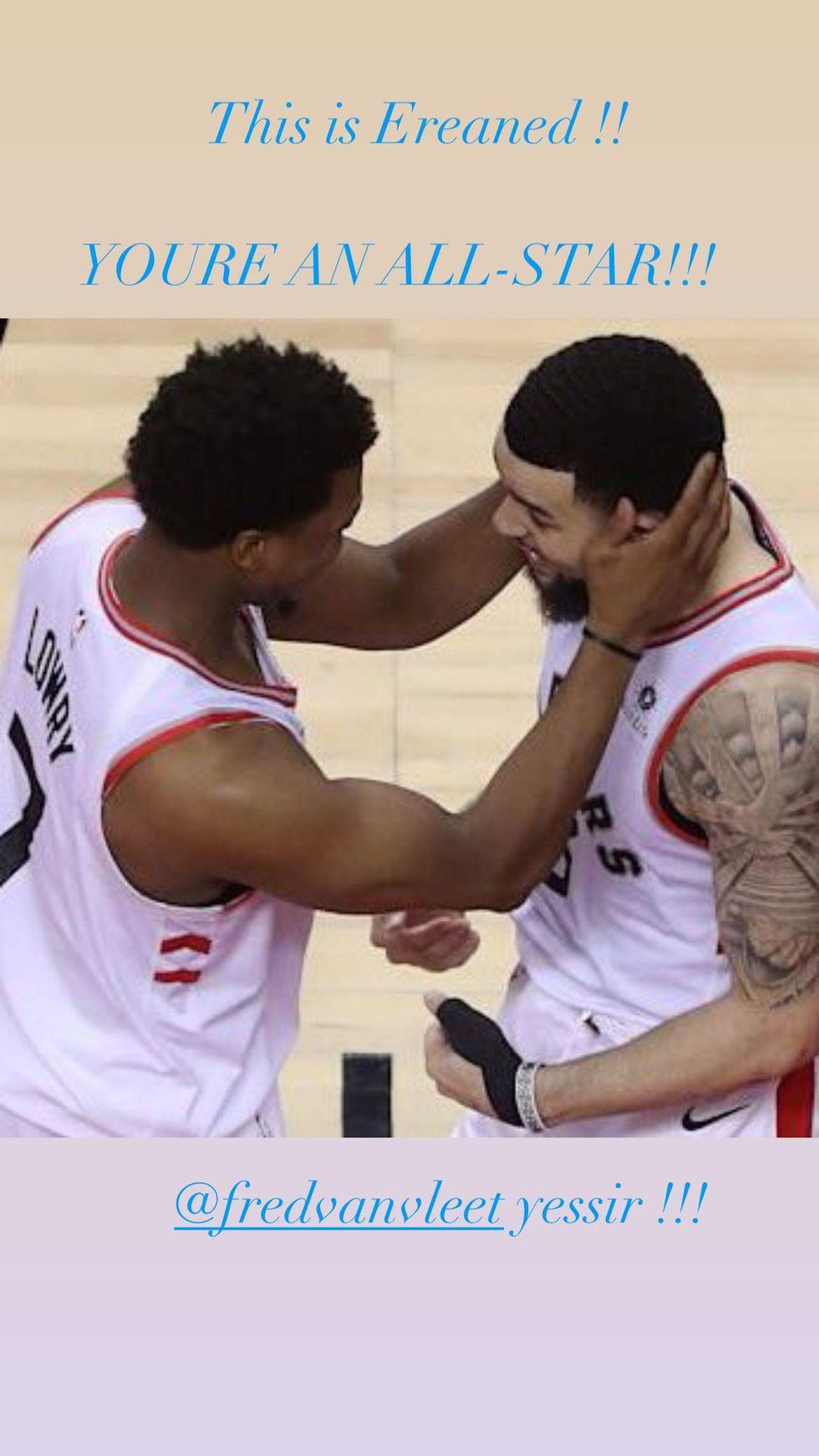 "Shoutout to VanVleet. My young buck. All-Star," he said.