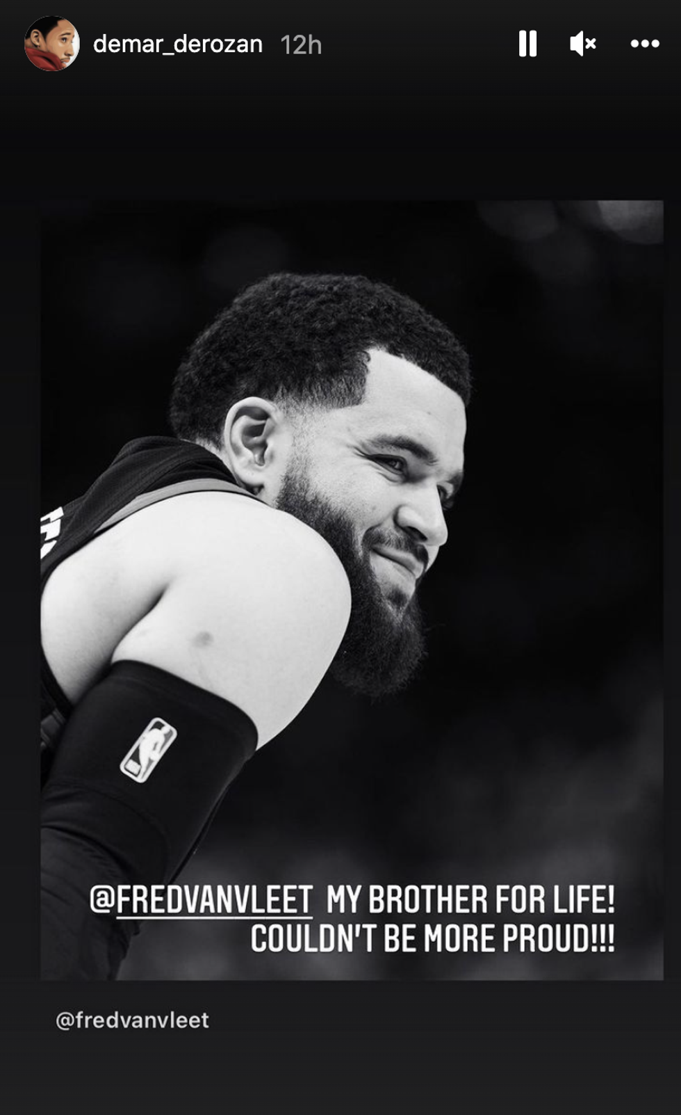 Former Raptor DeMar DeRozan sent Freddy some love on his Instagram story, calling him his "brother for life."