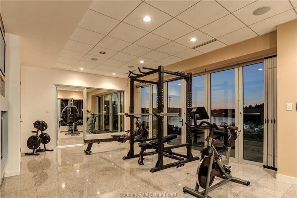 It may be a multi-million dollar home, but you'll save on a gym membership, thanks to a well-equipped fitness room.