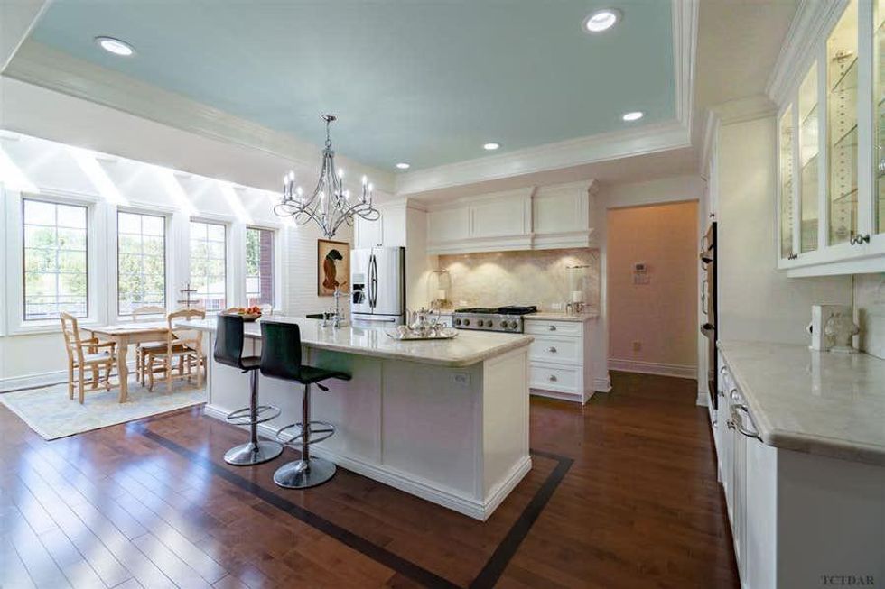 The master chef-style kitchen and dining area aren't only gorgeous to look at, they also offer views of the backyard and swimming pool.