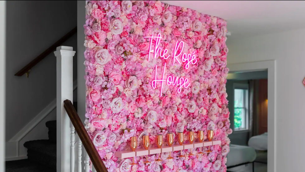 This New 'Rosé House' Airbnb Near Toronto Has A Floral Wall & 'Glam Room' For Getting Ready