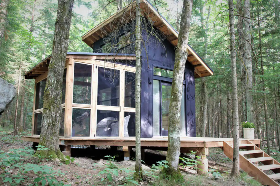 According to the Airbnb listing, the charming cabin was hand-built using materials milled from the property and custom carpentry to create a truly sustainable retreat.